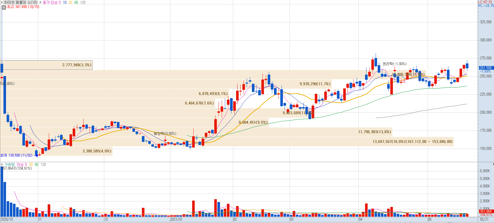 하이브는 글로벌 엔터테인먼트 콘텐츠 기업으로 21일 방탄소년단의 신곡 BUTTER가 공개되었습니다. 또한 2분기 주요 아티스트들의 복귀가 예정돼있습니다.