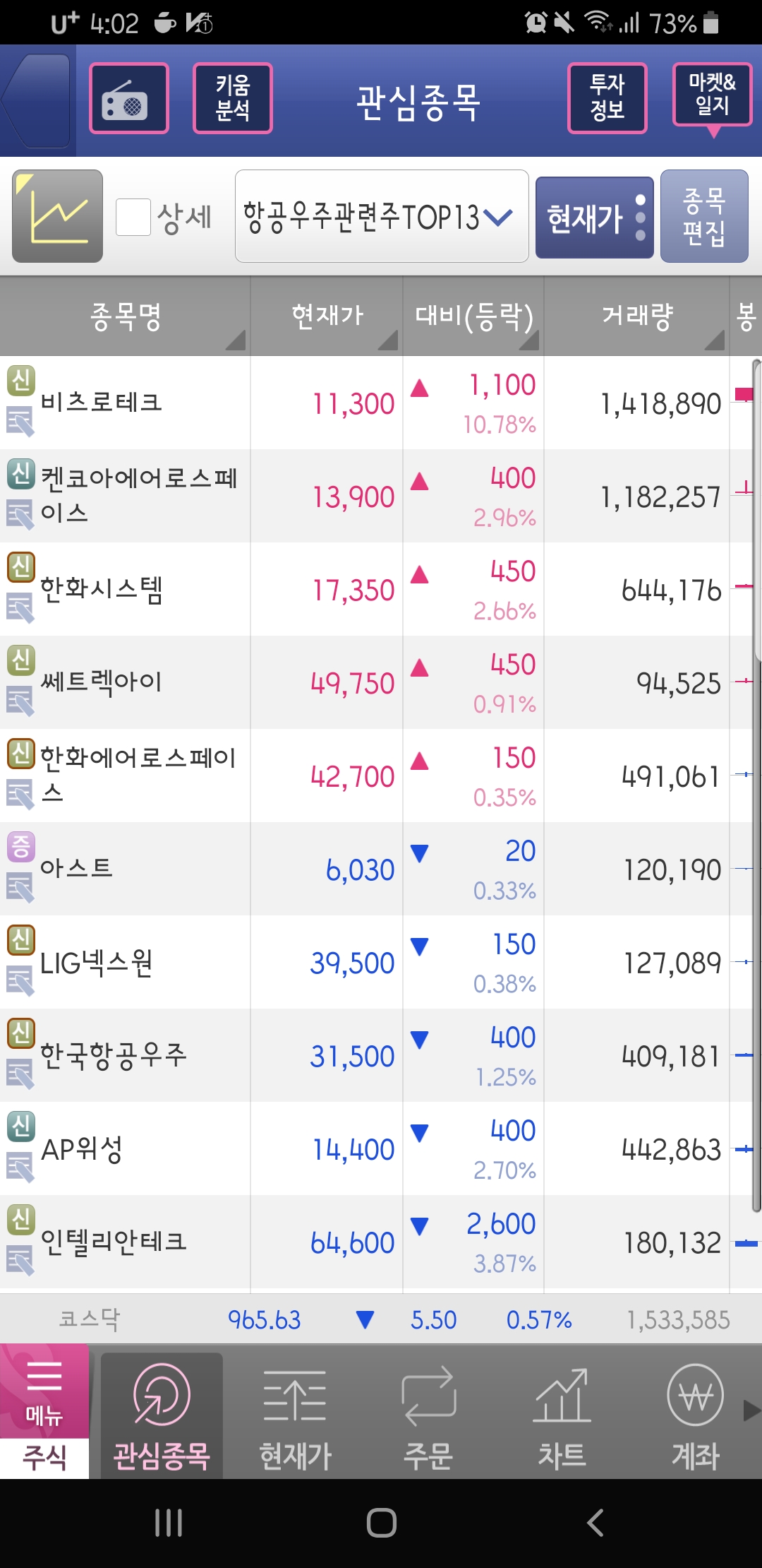 항공우주 관련주 ▼항공우주 관련주 TOP 13