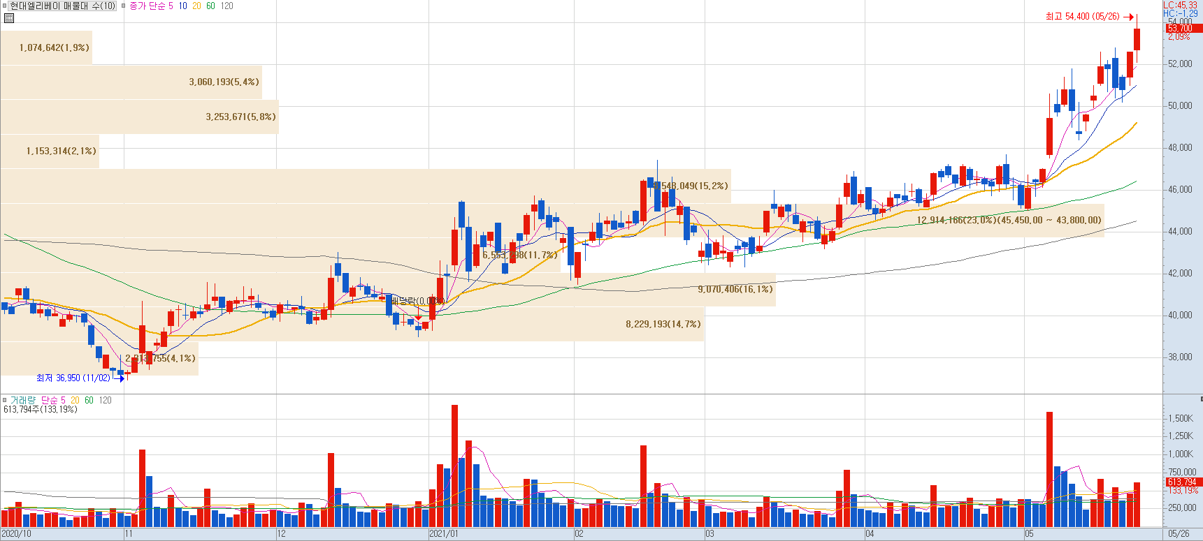 금강산, 개성지역에 독점적 사업권을 보유한 현대아산의 지분을 67.58% 보유하고 있습니다. 더부어 21년 1·4분기 매출액과 영업이익은 각각 전년 동기 대비 9.6%, 9.0% 증가했습니다. 현재 중국 내 생산능력을 확충하였고 재건축, 재개발에 따른 신규 승강기 교체 수요가 뒷받침하고 있습니다.
