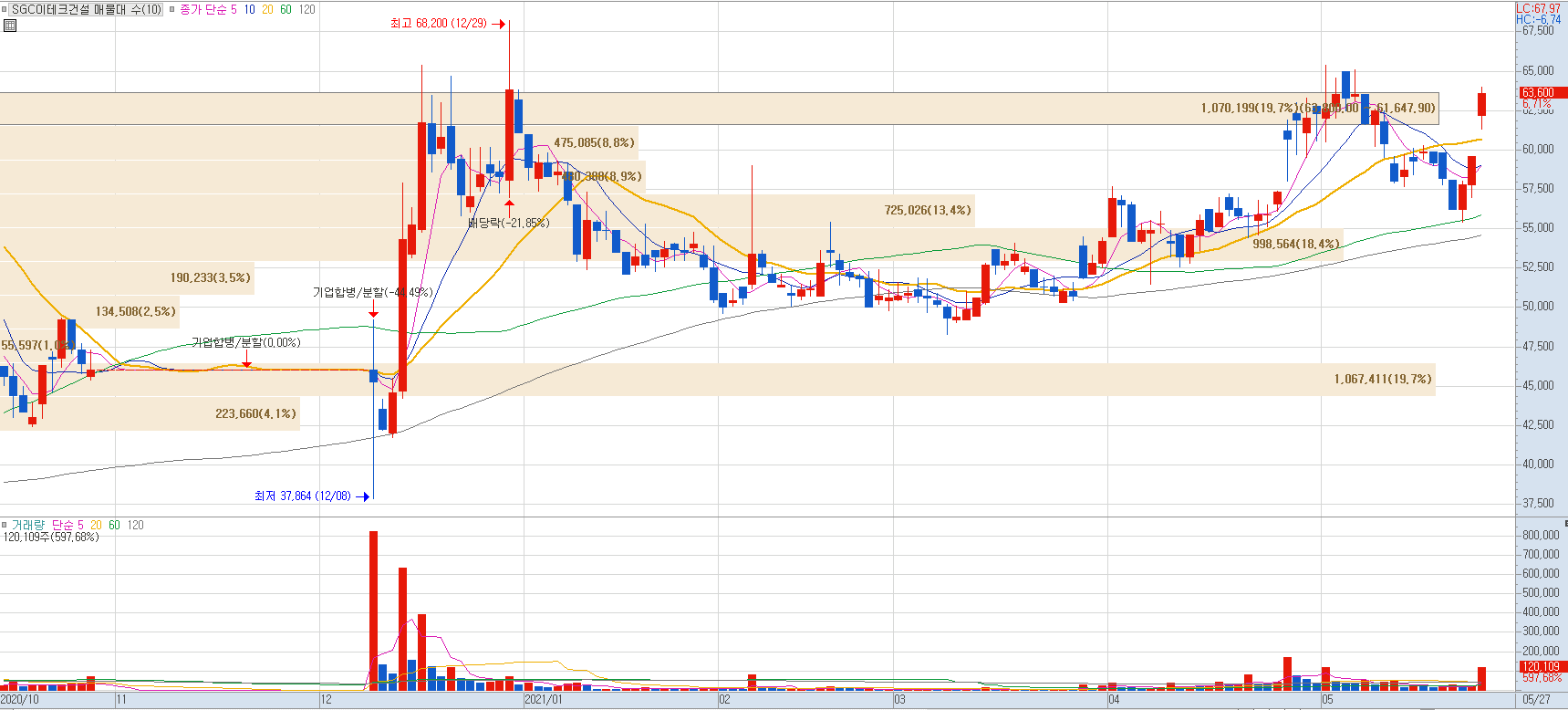 특히나 플랜트사업의 원가개선과 더불어 2020년 국내 물류센터 착공에 따른 마진이 개선되며 SGC이이테크건설의 21년 1분기 실적은 컨센서스를 63억 원 상회하는 호실적을 기록했습니다. 주택 브랜드로는 더리브를 보유하고 있습니다.