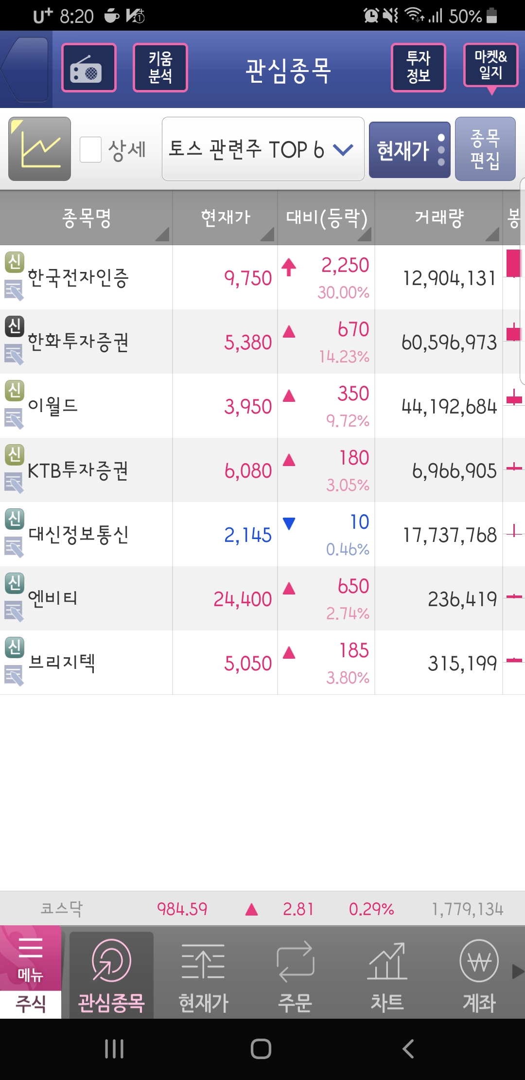 토스 관련주 ▼토스 관련주 TOP 6