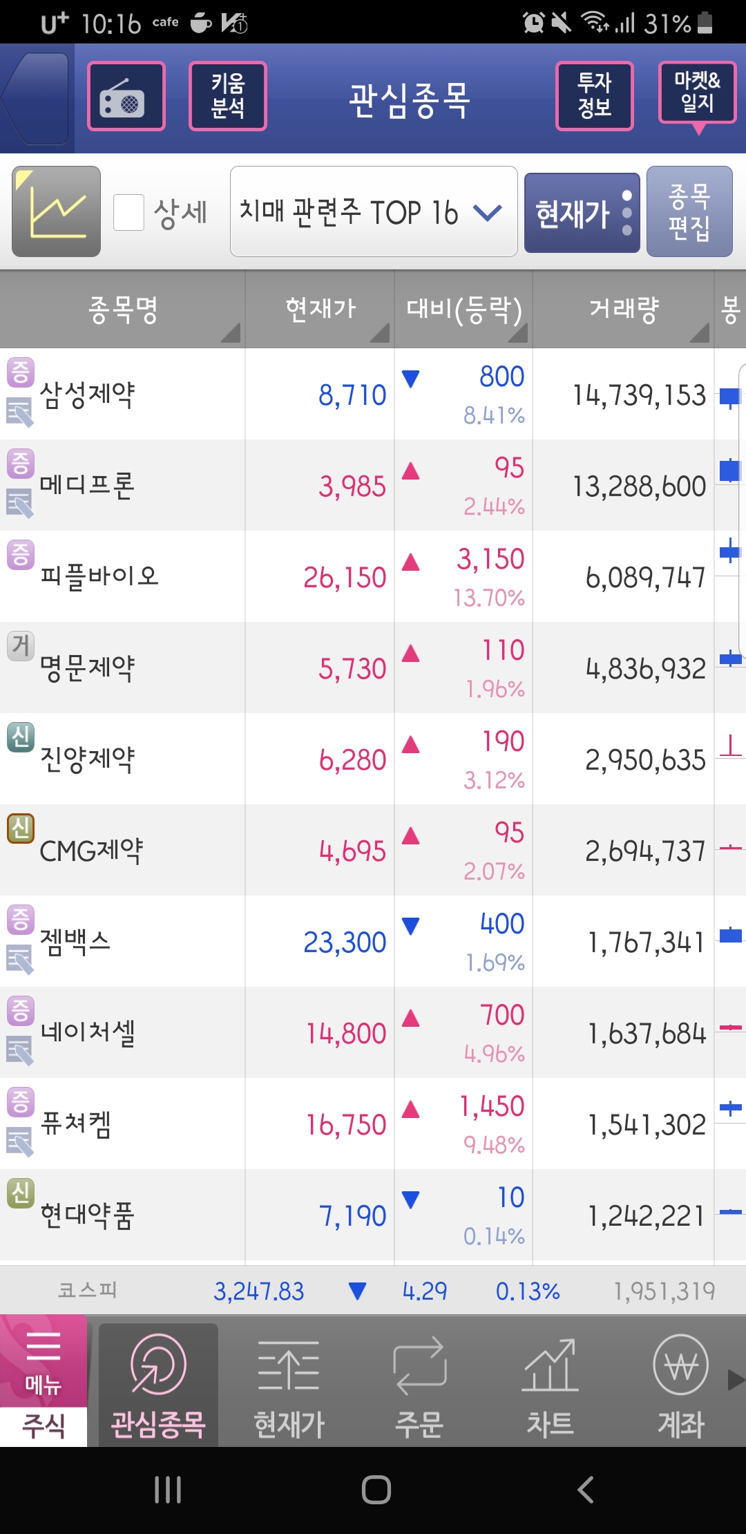 치매 관련주 ▼치매 관련주 TOP 10
