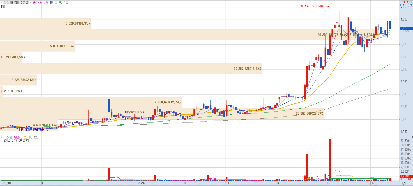 삼일은 일반화물자동차 운송사업, 덤프트럭 운송사업, 화물알선사업, 창고 보관업 등을 영위하고 있으며 특히 포스코의 물류 협력사로 철강 제품의 보관 및 육상 운송을 전담합니다.