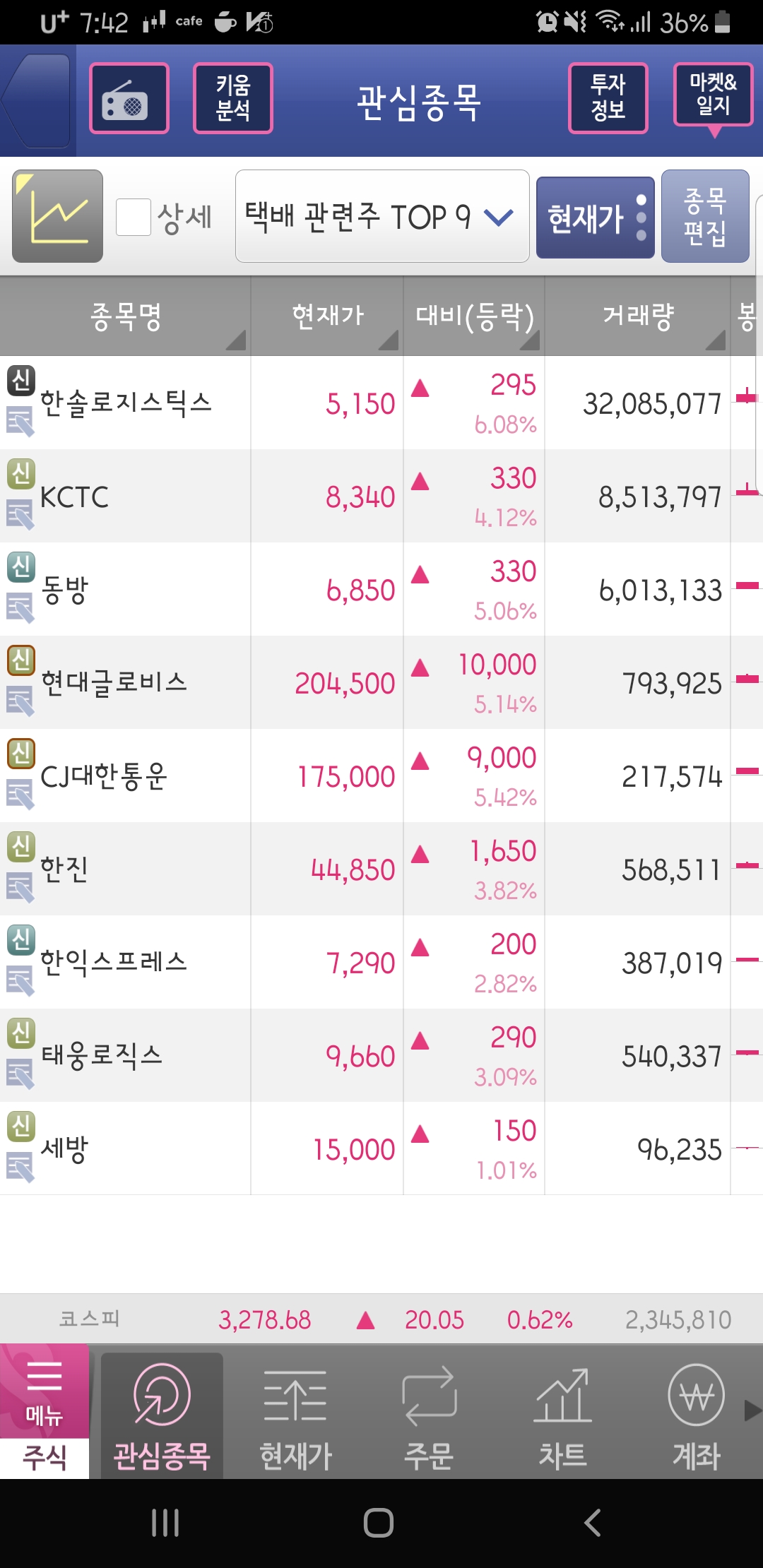 택배 관련주 ▼택배 관련주 TOP 9