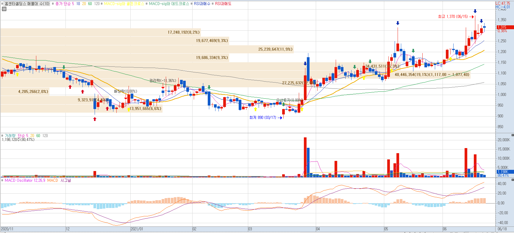 이밖에도 건축자재 도소매 부문과 레저스포츠 및 임대사업도 진행 중으로 매출 부문은 2020년 기준으로 건축자재 도소매 부문에서 약 57%, 레저스포츠 부문 13.3%, 배당금 수익 29.80% 등을 차지합니다.