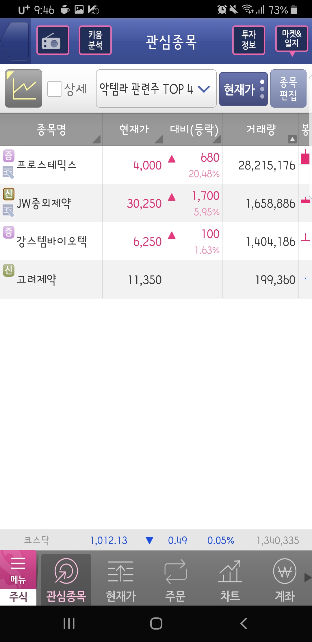 악템라 관련주 TOP 4 프로스테믹스 중외제약