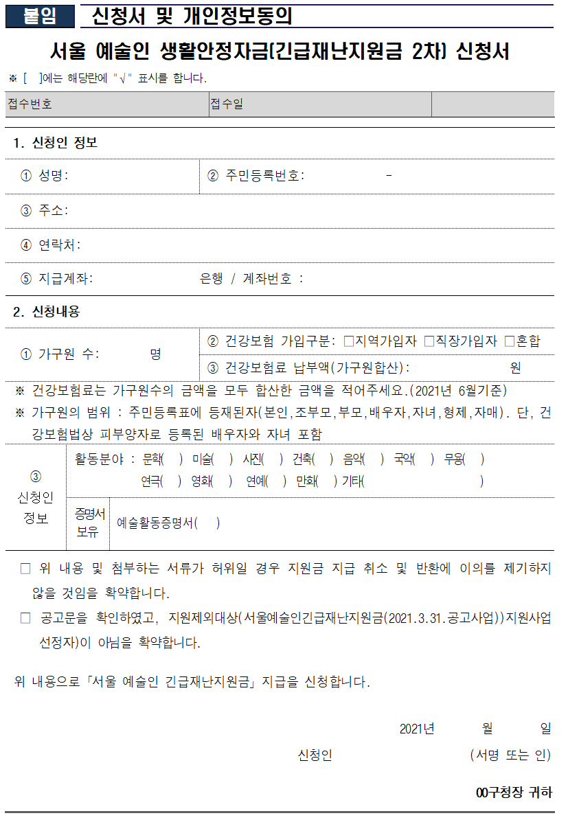 서울시 예술인 긴급재난지원금 100만원 지급생활정보 2021. 7. 16. 14:59반응형