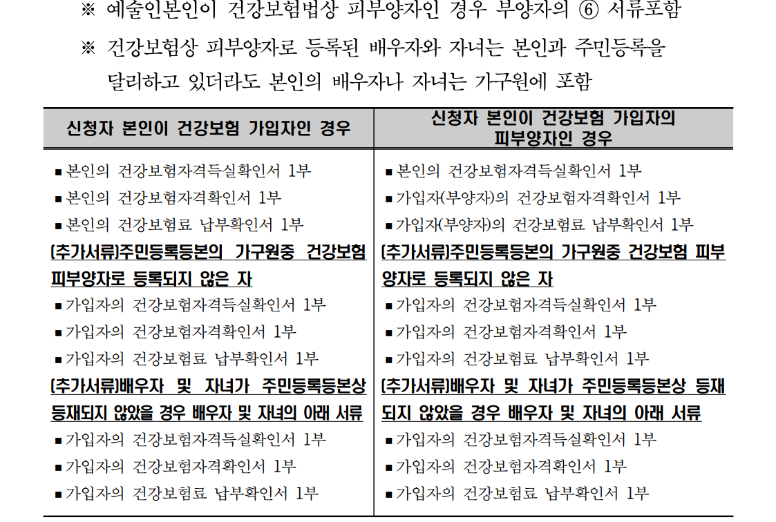 (5) 주민등록등본상 가구원 전체의 건강보험료 자격(득실) 확인서