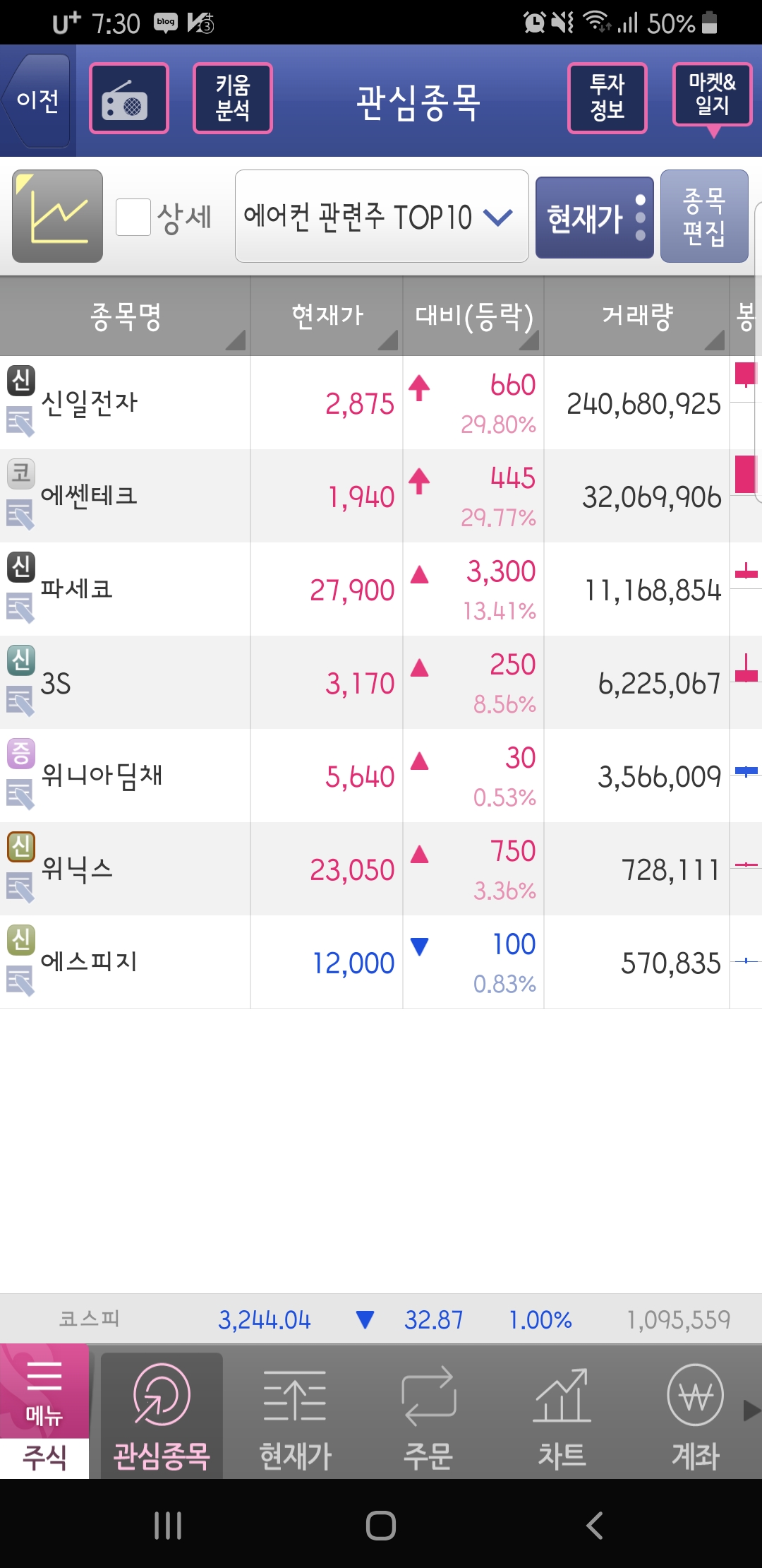 에어컨 관련주 TOP 7 ▼에어컨 관련주 TOP 7