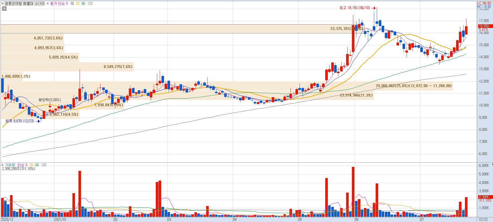 지난달 자체 자유여행 플랫폼을 출시한 이후 여행 콘텐츠 사업 다각화하기 위해 여행정보 공유 서비스 전문기업 위시빈(WishBeen)을 인수하기로 결정했습니다. 아울러 무상증자 단행 소식과 함께 최근 가격이 가파르게 상승했습니다.