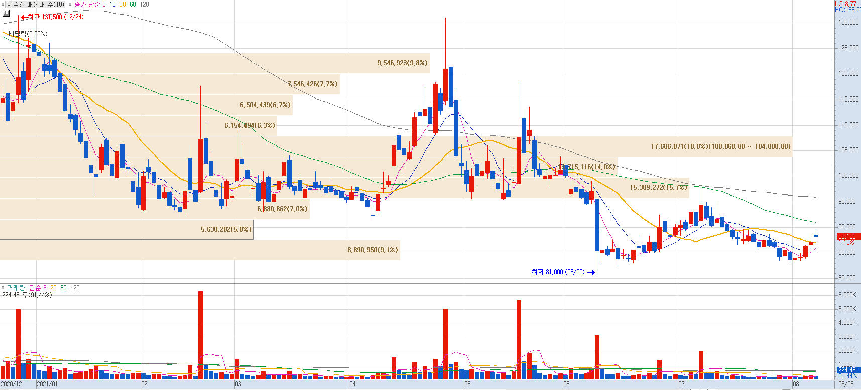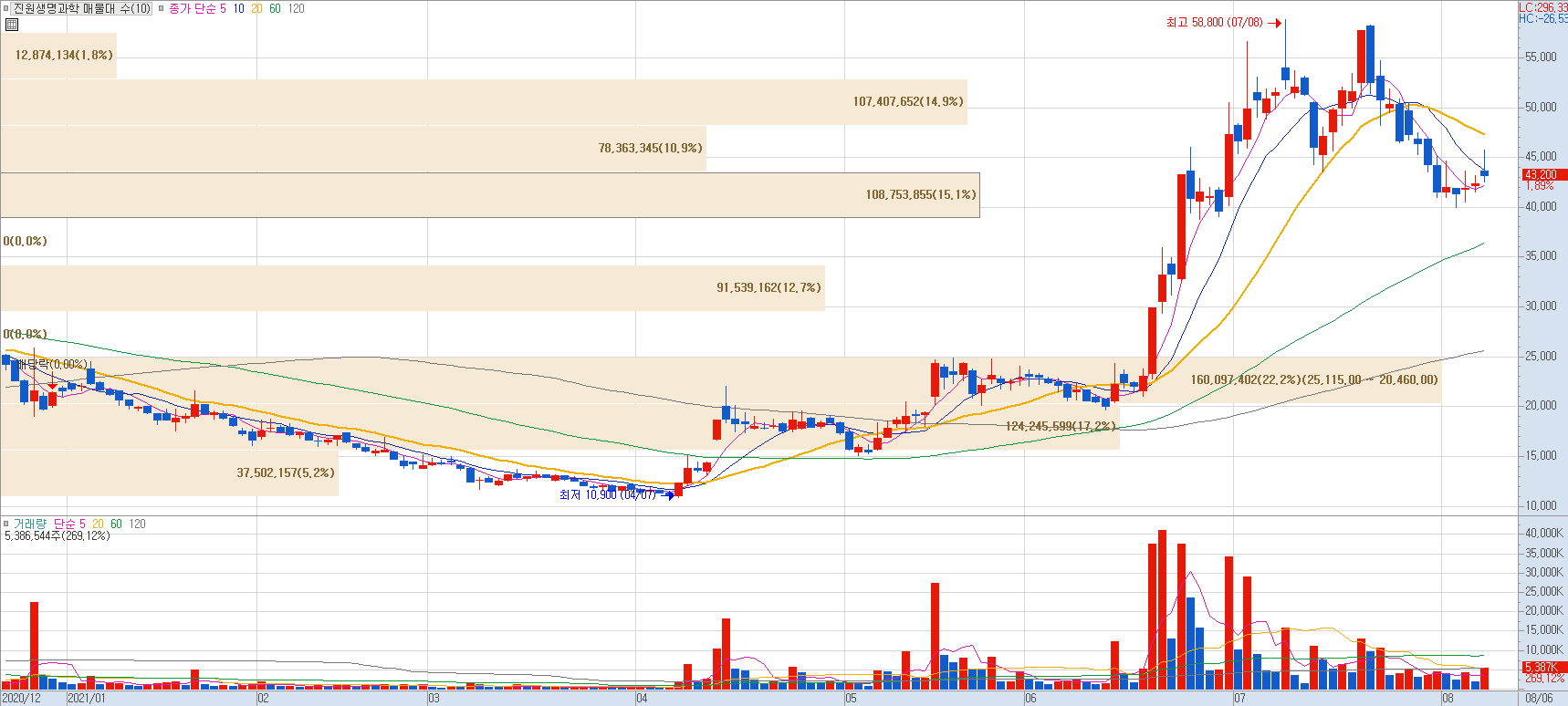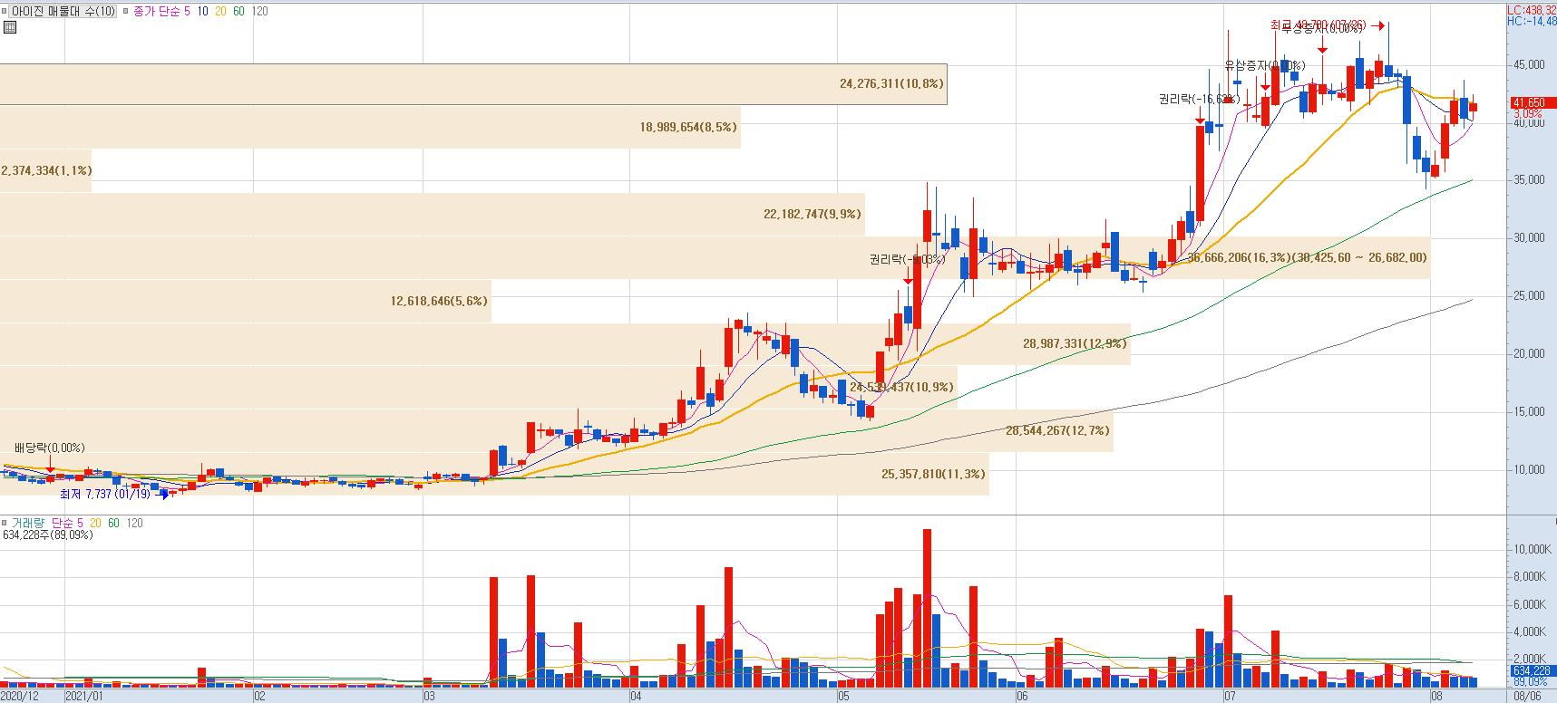 GBP510, NBP2001 동시 개발 중으로 둘 중 하나의 백신을 3분기 내에 3상 진입이 목표입니다. 올해 2분기 영업이익이 662억원으로 전년 동기 대비 흑자전환한 것으로 잠정 집계되며 여기에 이어 하반기에도 CMO/CDMO-노바백스 정부 계약 물량 등으로 더욱 성장하여 호실적을 이어갈 것으로 전망되며 최근 주가가 연일 강세를 보이고 있습니다.