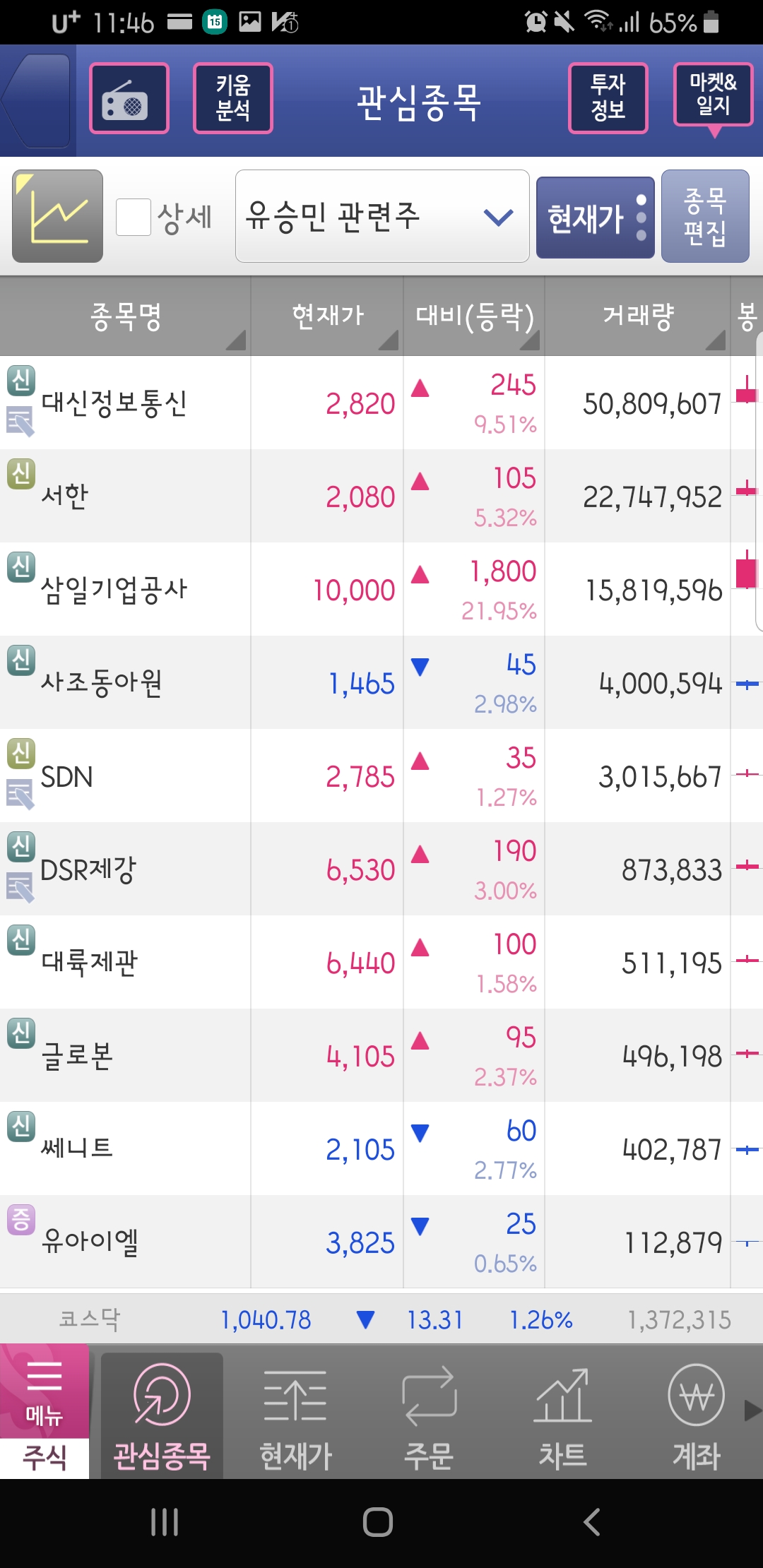 유승민 관련주 대신정보통신 서한 삼일기업공사 등