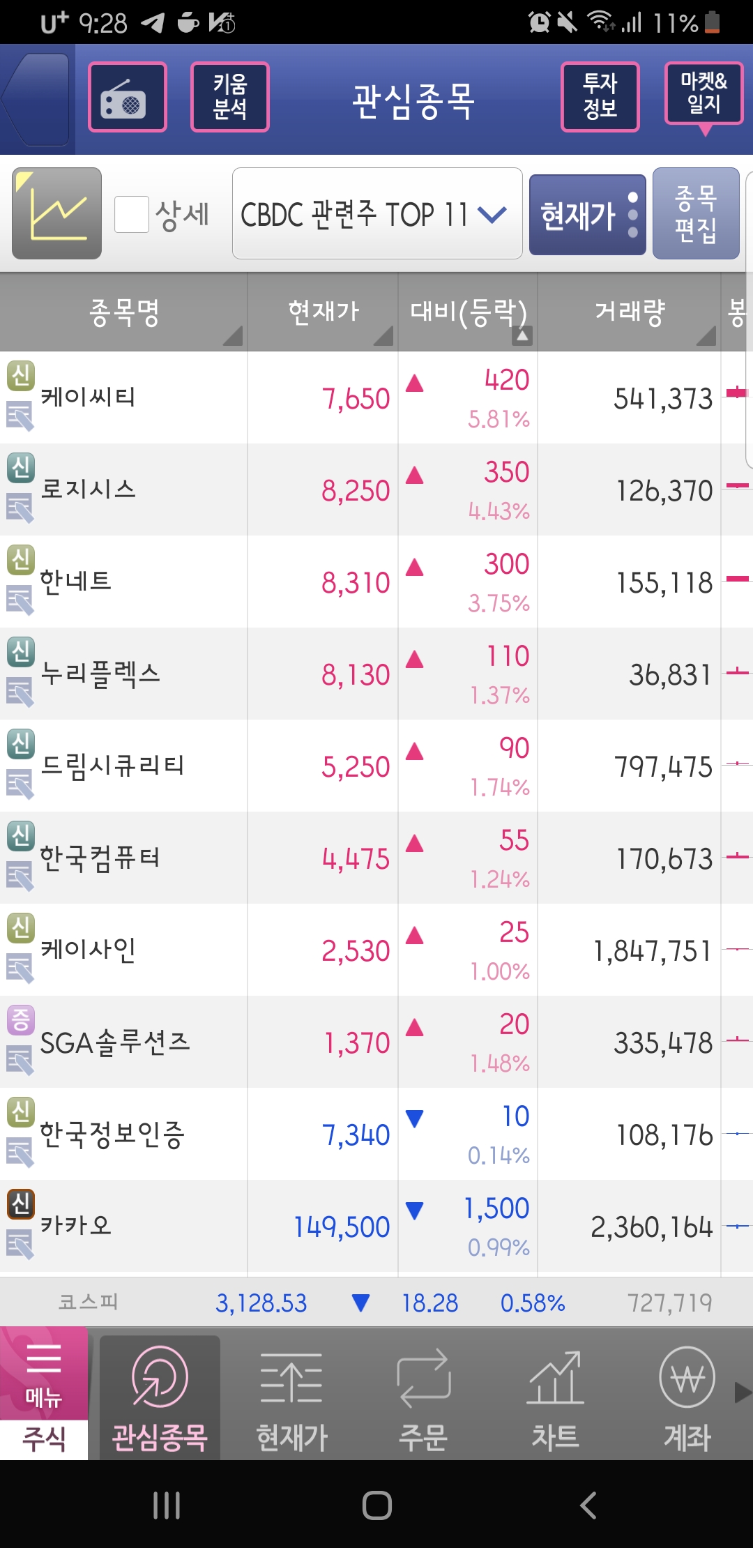 디지털화폐 관련주 케이씨티 로지시스 한네트 등