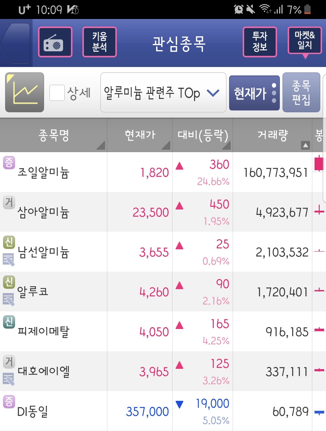 알루미늄 관련주 삼아알미늄 조일알미늄 남선알미늄 실적 등