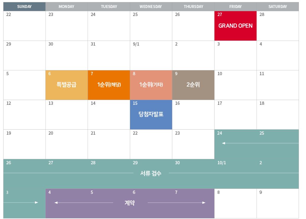 3) 1순위공급일 : 9월 7일 8시~17시30분에 청약홈을 통해 신청이 가능합니다.