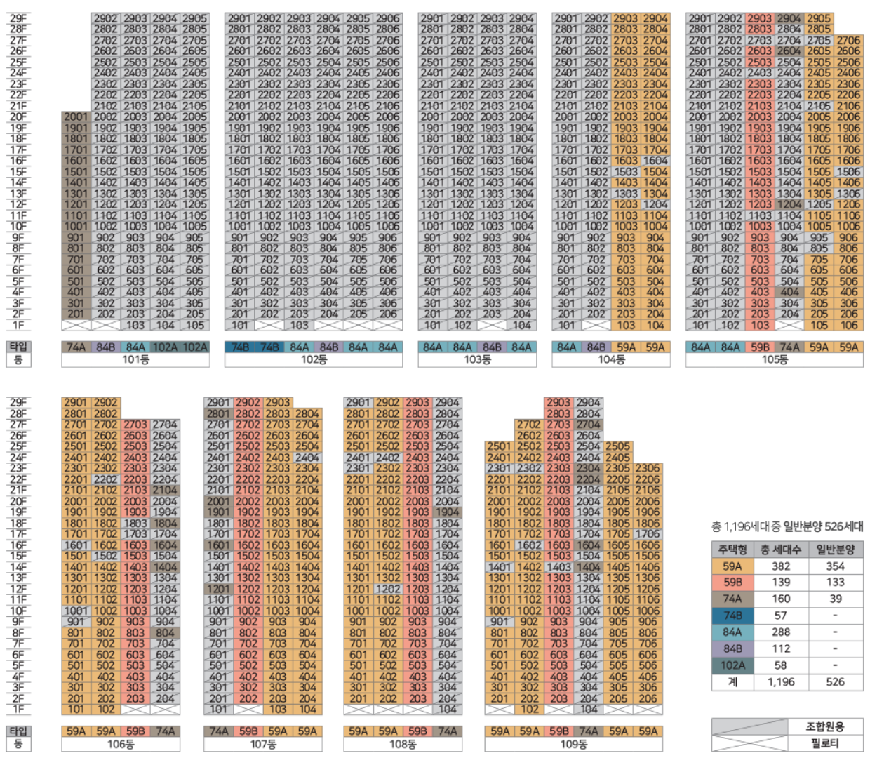 *특별공급 263세대[기관추천특별공급 52세대, 다자녀가구특별공급 52세대, 신혼부부특별공급 106세대, 노부모부양특별공급 16세대, 생애최초특별공급 37세대]포함