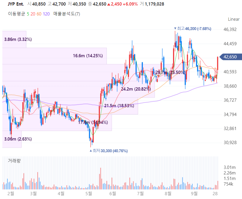 JYP엔터테인먼트는 하나금투에 따르면 3분기 매출액이 전년 동기 대비 49% 증가한 515억원, 영업이익은 76% 증가한 195억원을 기록할 것으로 예상됩니다.