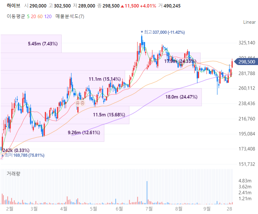 아울러 국내에서도 위드 코로나 전환도 눈앞에 다가오면서 하이브는 BTS가 오는 11월 27~28일과 12월 1~2일 미국 LA 소파이 스타디움에서 콘서트를 개최할 예정이며 지난 2019년 월드투어를 통해 약 1억6000만달러의 매출을 기록한바 있습니다.