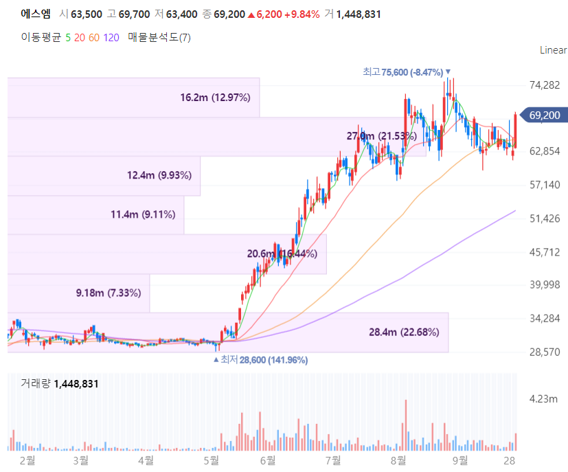 에스엠은 K-Pop을 선도하는 종합 엔터테인먼트 그룹으로 SM 세계관을 바탕으로 엔터사업을 주도하고 있습니다. 소속 아티스트는 강타, 보아, 동방신기, 슈퍼주니어, 소녀시대, 샤이니, EXO, 레드벨벳, NCT 127, NCT DREAM, 슈퍼엠, WayV, 에스파 등이 있으며 미국, 일본, 중국 등 해외법인 설립으로 글로벌 네트워크를 구축했습니다.