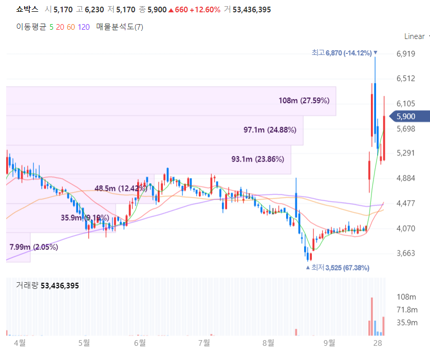 쇼박스는 영화의 제작과 투자 및 배급업 등을 영위할 목적으로 1999년 6월 설립되어 2007년 7월 메가박스를 매각하면서 영화 콘텐츠 사업에 역량에 초점을 맞춰 사업을 진행하고 있습니다. 쇼박스는 자회사를 통해 중국 호북성 홈쇼핑 사업에 진출하기도 했으며 지난 2018년 오징어 게임 제작사인 싸이런픽처스에 10억원을 투자했다는 소식에 오징어게임 관련주로도 편입됐습니다.