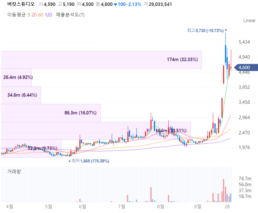 버킷스튜디오는 1999년에 설립됐으며 온라인 스마트디바이스 기반의 콘텐츠 제공업 및 모바일서비스를 주사업 목적으로 영위하고 있습니다. 스마트 디바이스 기반의 영화 등 콘텐츠 유통, 통합 메시징 시스템(UMS), 온라인 콘텐츠의 저작권 보호를 위한 필터링 솔루션 등으로 매출이 발생하고 있으며 버킷스튜디오는 오징어 게임 주연 배우 이정재의 소속사인 아티스트컴퍼니의 지분 15%를 보유한 대주주로 크게 부각받습니다.