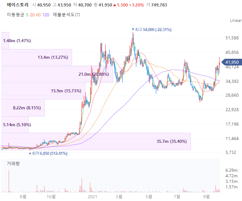 지난 2분기 에이스토리의 매출액은 전년 동기 대비 무려 8077%나 늘어난 253억원을 기록했고, 영업이익은 시장기대치 30억을 훨씬 웃돈 45억원으로 흑자 전환하였습니다.