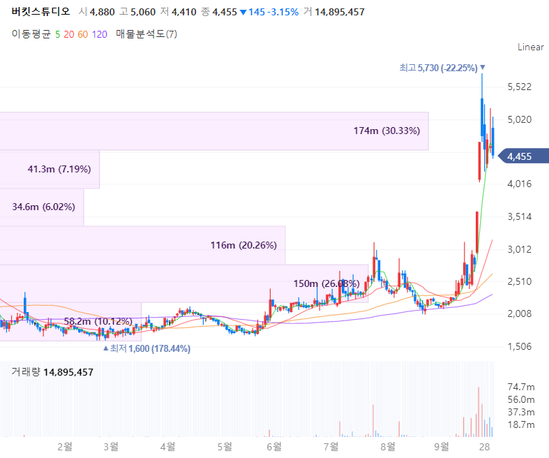 버킷스튜디오는 IPTV·케이블방송·스마트TV 등 온라인 기반의 다양한 영상, 영화 콘텐츠 서비스를 제공하는 전문 기업으로 오징어게임의 주연 배우 이정재의 소속사(아티스트컴퍼니) 지분을 보유하며 대주주로 자리잡고 있습니다. 이에 더해 K콘텐츠 발전을 위해 제작 투자에 적극 나서는 모습을 보이고 있습니다.