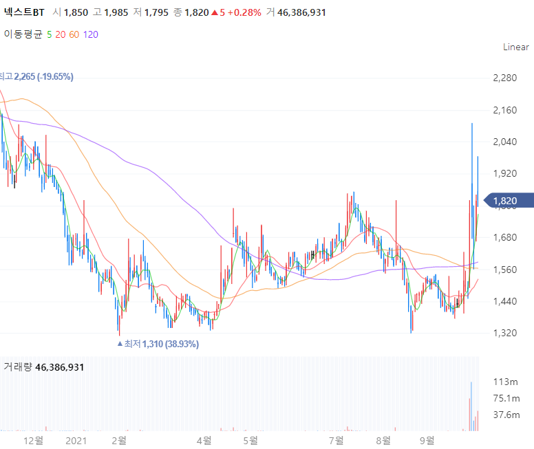넥스트BT는 2010년 12월 대한석탄공사 및 선진그룹유한회사와 몽골 석탄광산 인수를 위한 합작법인(JV)인 한몽에너지개발을 통해 석탄광산 인수 및 운영을 하는 한몽에너지개발 지분 21%를 보유하고 있습니다. 넥스트BT는 한몽에너지개발을 통해 몽골 하르알탕박 지역에 위치한 훗고르샤나가사의 유연탄광 지분 51%을 아울러 보유하고 있으며 원자재 가격 상승에 따른 수혜를 보고 직접적으로 보고 있습니다.