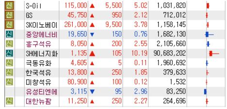유가 관련주 S-Oil, GS, 중앙에너비스, SH에너지화학, 흥구석유 등 ▷유가 관련주 S-Oil, GS, 중앙에너비스, SH에너지화학, 흥구석유 등