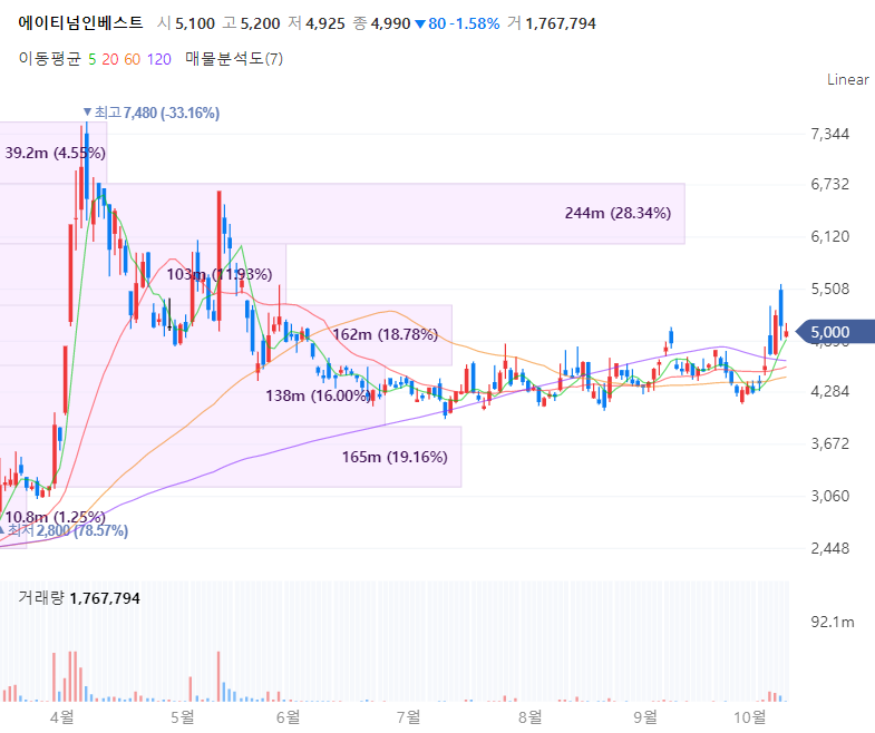 에이티넘인베스튼 벤처투자 촉진에 관한 법률에 의한 창업자에 대한 투자와 자본시장과 금융투자업에 관한 법률에 따른 경영참영형 사모집합투자기구를 운영합니다. 현재 4개 투자조합으로 약 1조2030억원의 자산을 운용합니다. 에이티넘의 두나무 지분 6.05% 보유로 알려지고 있습니다.