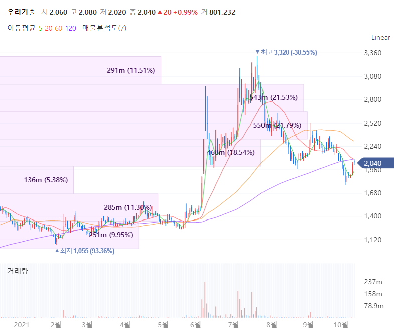 우리기술은 대주주 및 그 특수관계자가 8.72%의 지분을 소유한 만큼 품절주이기도 합니다.