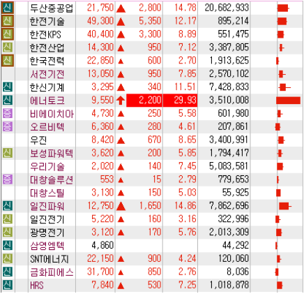 원전관련주 에너토크 두산중공업 우리기술 일진파워 한전산업 등