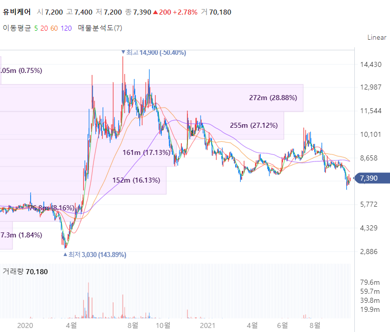 유비케어는 국내 요양기관 EMR 시장점유율 1위 기업으로 의료정보 플랫폼 사업, 개인 건강정보 관리 플랫폼 사업을 전문으로 영위하는 기업입니다. 전국 24,400여 개의 의료네트워크를 구축하고 있으며, 헬스케어 관련 의료기기를 맞춤형 서비스를 제공하고 있으며 타 업체에 비해 경쟁력을 확보하고 있습니다. 아울러 최근 유비케어는 기존 환자 진료 중심에서 질환 관리까지 사업영역을 확장하기 위해서 만성질환 관리 플랫폼 기업인 아이쿱의 지분 33%를 인수하면서 사업을 확장하고 있습니다.