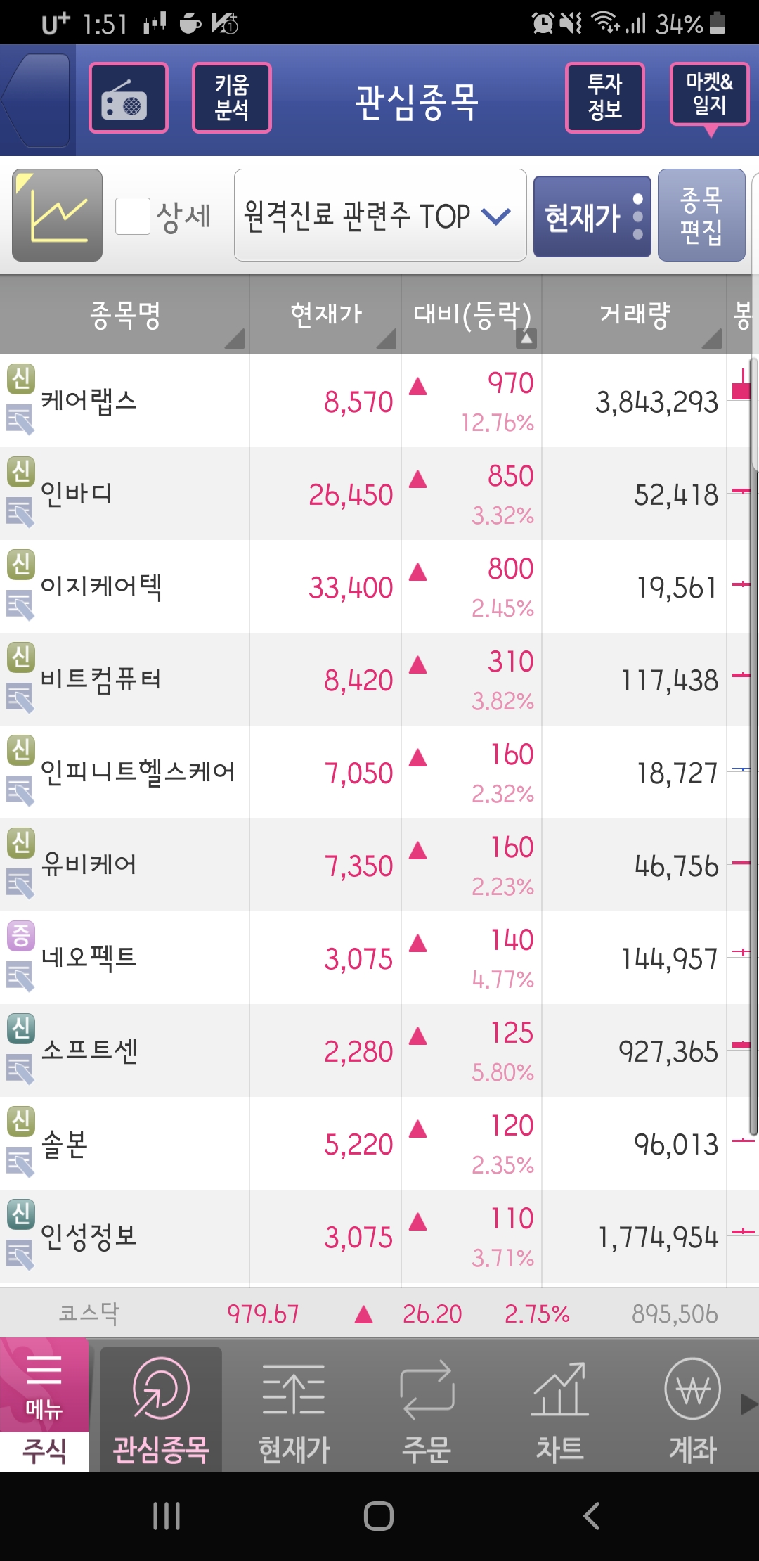 최근 카카오가 의료 빅데이터 업체 휴먼스케이프 투자를 검토하면서 데이터를 기반으로 하는 헬스케어 의료산업이 확장될 전망입니다. 이외에도 의료 빅데이터를 모을 수 있는 10여 개 바이오와 헬스케어 업체들과 투자 및 협업 논의를 진행 중으로 알려지며 케어랩스 제이시스메디칼 비트컴퓨터 솔본 유비케어 등을 필두로 의료기기 관련주가 강세를 보입니다.