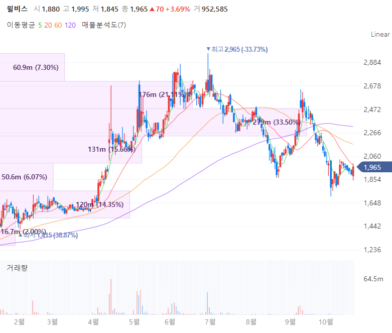윌비스는 나무경영아카데미, 윌비스에듀 등을 통해 각종 성인 교육 사업을 영위하는 업체로 대표적인 일자리 관련주로 편입됩니다. 나무경영아카데미는 공인회계사, 세무사시장에서 전문화된 교육 관리 서비스를 제공하며 자회사인 미래넷이 보유한 우수한 이러닝을 통해 콘텐츠를 수강할 수 있는 온라인 교육 서비스를 통해 공무원 시험 및 성인자격증 교육 등 교육 사업을 진행합니다. 윌비스의 올해 2분기 매출은 688억원으로 전년 동기 대비 39.33% 증가했고 영업이익이 4억원으로 전년 동기 대비 흑자로 전환에 성공했습니다.