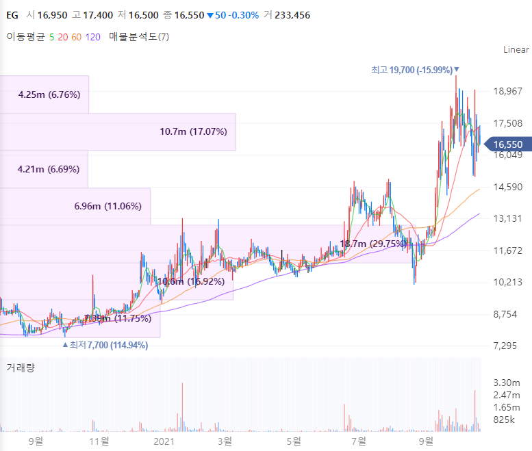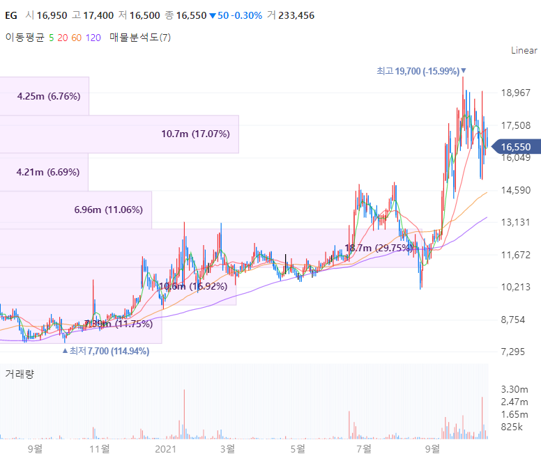 EG는 산회수 설비의 설계 및 시공, 운전능력을 겸비하고 있는 산화철 전문기업으로 고급산화철 세계시장 점유율 1위를 유지중입니다. 주요 고객사로는 중국의 TDG, 일본의 TDK 등을 두고 있으며 우수한 품질의 제품을 제조하여 안정적으로 공급하며 업계 선두자리를 지키고 있습니다. 아울러 LFP 배터리는 양극재로 니켈, 코발트, 망간을 쓰는 삼원계 배터리와 달리 산화철을 이용하기에 EG가 부각받고 있습니다.