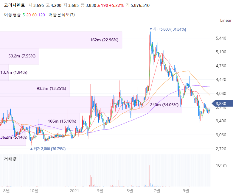 고려시멘트는 2012년 7월 20일에 설립됐으며 시멘트 및 레미콘 제조 및 판매업을 주요사업으로하며 시멘트사업 매출 증대 및 사업역량 강화에 집중하고 있습니다. 특히나 고려시멘트의 매출액은 강동레미콘에이치에스, 일석 두회사로부터 2021년 2분기 매출의 58.9%가 집중되었습니다. 지난 26일에는 고로슬래그시멘트 생산 신규시설투자 및 공장신설, 목포권역 출하기지 확보를 위한 100억원 규모 신규시설투자를 단행했습니다.
