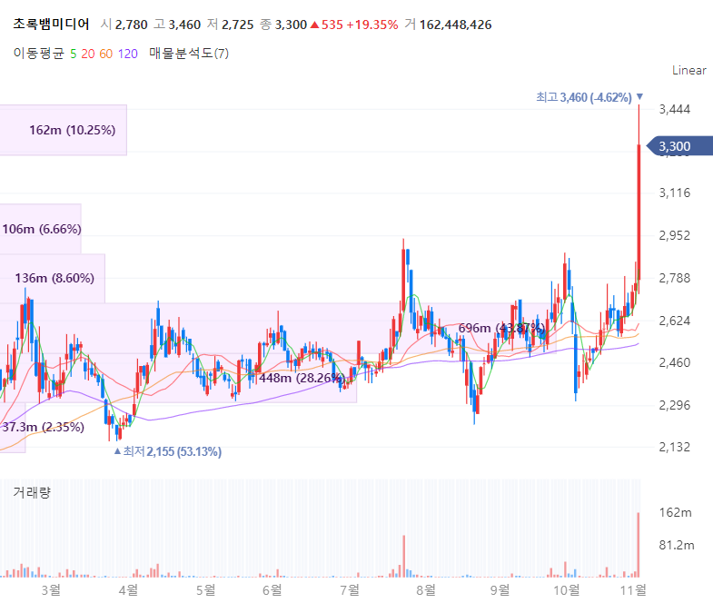 초록뱀미디어는 TV드라마 제작을 중심으로 하는 콘텐츠 제작사업과 드라마 콘텐츠를 기반으로 하는 각종 부가사업 및 부동산사업을 영위하며 드라마 '펜트하우스'를 포함해 '결혼작사 이혼작곡' 등이 흥행을 일으켰습니다. 오는 11월에는 김수현 차승원 주연의 '어느날'이 방영될 예정이며 내년에는 방탄소년단(BTS)의 세계관을 영상화한 'Youth'를 선보입니다. 싸이우러드Z 컨소시엄에 참여한 스카이이엔엠의 최대주주로도 부각받습니다. 아울러 초록뱀미디어의 IP룰 활용한 다양한 사업방면에 대해 중국의 틱톡, 미국의 폭스사 등 여러 회사와 투자 논의가 오고갔다는 소식이 전해집니다. 아울러 글로벌 인터렉티브 스트리밍 기업인 아레나캐스트와 사업제휴를 맺은바 있고 다양한 디지털 콘텐츠를 쌍방향으로 즐길 수 있는 서비스 플랫폼과 블록체인 기술을 활용한 NFT시장에 대한 진출기대감도 커지고 있습니다.