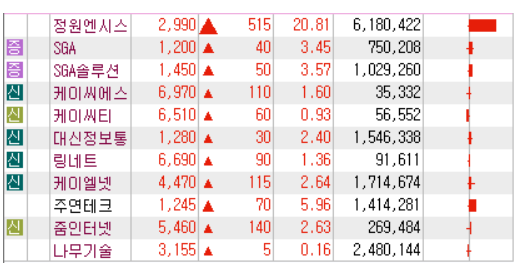 ▷이재명정책 관련주 정원엔시스 SGA솔루션즈 대신정보통신 주연테크 나무기술 등