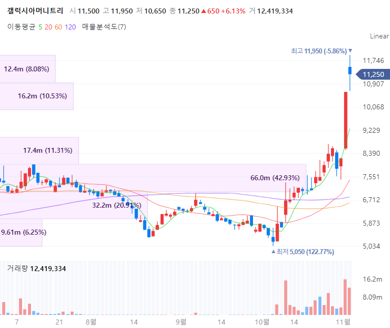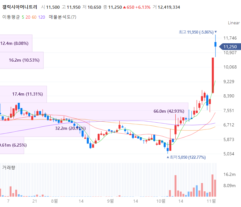 갤럭시아머니트리는 모바일 상품권과 쿠폰 및 편의점 기반의 결제, 전자민원캐시의 전자결제, O2O 사업부문 등과 종합금융플랫폼 머니트리를 운영합니다. 갤럭시아머니트리는 아울러 예술품을 블록체인 기술기반 하에서 디지털자산으로 소유권을 분할해 판매하는 사업 등 추진하며 자회사 갤럭시아메타버스를 통해 큐레이션 기반 NFT 플랫폼 메타갤럭시아를 오픈했습니다. 최근 김연경 선수를 콘텐츠로 한 박승우 작가의 NFT 작품이 인기리에 완판이되며 강세를 보입니다. 갤럭시아메타버스는 지난 5월 설립 이후 스포츠, 방송, 디지털아트, 엔터, 사진, 미술 등 다양한 영역에서 NFT화 할 수 있는 IP(지식재산권)를 확보해 온 노력으로 이제 빛을 내고 있습니다.