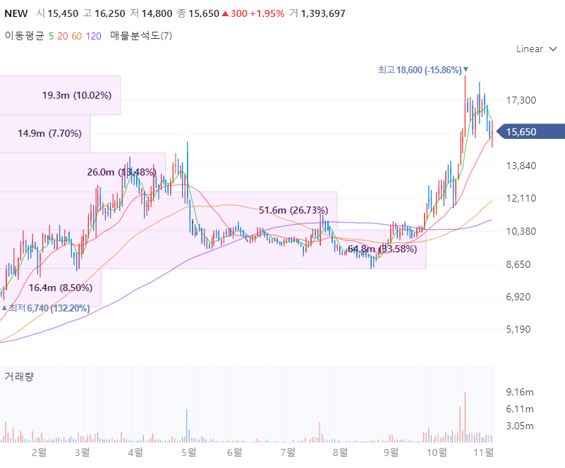 NEW는 2008년 도메오홀딩스로 시작하여 영화, 비디오물 및 방송프로그램 배급업을 영위하며 8개 사업부를 갖추고 있고 영화사업부와 콘텐츠 제작사 스튜디오앤뉴 그리고 VFX계열사 엔진비주얼웨이브 등을 보유합니다. 애플TV 앱에 콘텐츠 공급이 확정되었으며 NEW의 계열사 스튜디오앤뉴가 디즈니와 장기콘텐츠 파트너십 체결하였고 디즈니플러스에 선보일 예정입니다. NEW의 영화사업부는 할리우드 투자사 라이브러리 픽처스 인터내셔널과 3년간의 지분 투자 계약을 체결하고 신규 IP확보에 주력하고 있으며 이외에도 10편 이상의 드라마를 프리프로덕션 중이며 음악사업 계열사 뮤직앤뉴는 지난 10월 중국의 텐센트 뮤직 엔터테인먼트 그룹과 음원 공급 계약을 체결한 바 있습니다.