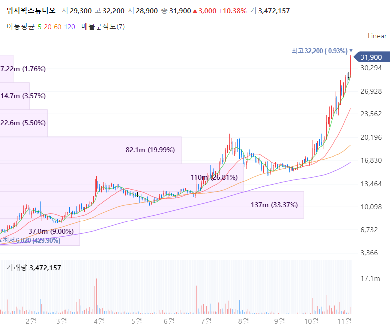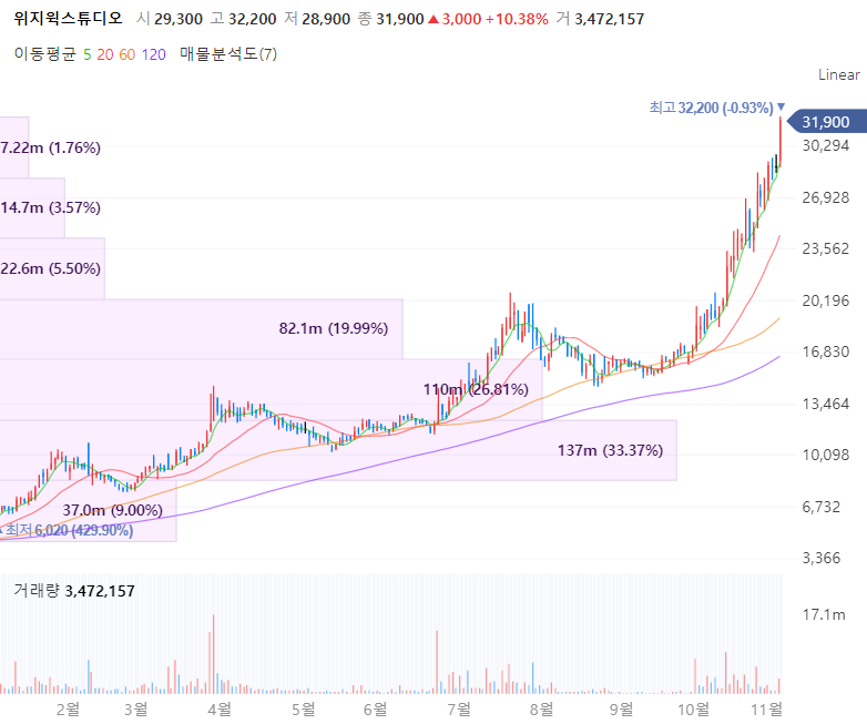 위지윅스튜디오는 VFX 전문업체로 CG/VFX 기술을 기반으로 한 영장제작기술을 보유합니다. 2018년 국내 최초 월트 디즈니 공식협력사로 선정됐으며 2021년 8월 컴투스가 동사의 지분을 추가 취득해 지분율이 38.1%로 최대주주로 등극했습니다. 위지윅스튜디오는 최근 SBS '런닝맨', CJ ENM '렛미인' 등을 제작한 드라마,예능 제작사인 얼반웍스를 인수하며 이를 통해 위지윅과 컴투스가 보유한 콘텐츠 제작 및 뉴미디어 밸류체인 관계를 더욱 강화할 방침입니다.