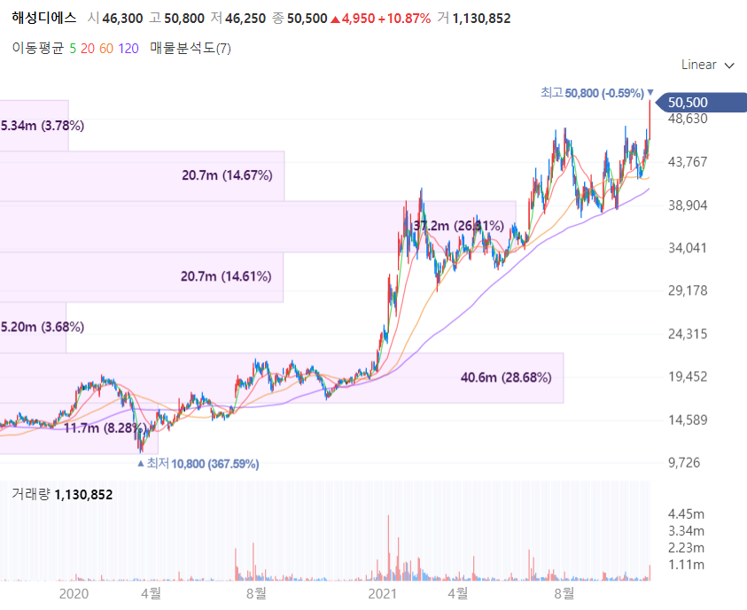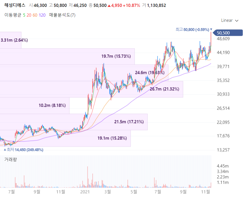 해성디에슨느 반도체 패키징에 필요한 부품인 리드프레임과 패키지기판을 전문제조합니다. 해성디에스의 리드프레임은 반도체 칩에 전기를 공급하고 이를 지지해주는 역할을 하는 핵심 부품이며 차량용 반도체 기업인 NXP, 인피니온, ST마이크로 등에 납품합니다. 아울러 패키지기판은 반도체와 메인보드 사이에 전기 신호를 전달하는 역할로 삼성전자와 SK하이닉스 등 메모리 반도체 업체를 고객사로 둡니다. 해성디에스의 3분기 매출은 전년 동기 대비 43.2%, 영업이익은 124.9% 급격하게 상승하는 등 호실적을 이어가고 있습니다.