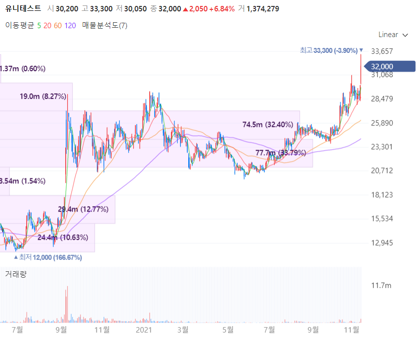 유니테스트는 반도체 검사장비 업체로 반도체 후공정 사업을 주로 영위하며 메모리 모듈 테스터 및 메모리 컴포넌트 테스터를 국내 업계 최초로 개발 완료하여 반도체 장비의 국산화에 힘쓰고 있습니다. 아울러 유니테스트는 기존의 SI 태양전지를 대체할 수 있는 보다 저렴하면서 고효율을 낼 수 있는 페로브스카이트 물질을 이용한 신규의 태양전지를 개발중이며 주요 매출 구성은 태양광 사업 57.51%, 반도체 검사장비 42.48%으로 구성됩니다.