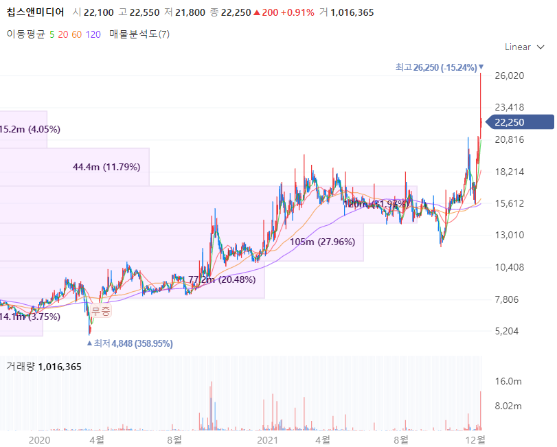 칩스앤미디어는 2003년 3월 설립됐으며 반도체 설계자산 업체로 반도체 IP 가운데 비디오 IP 사업을 주력으로 영위합니다. 칩스앤미디어는 차량용 반도체 업체 NXP에 동영상 코덱 기술 공급하였고, 모빌아이에 설계자산을 공급하면서 자율주행 칩 시장으로 보폭을 넓히고 있습니다. 모빌아이와 협업한 실적을 바탕으로 향후 구글이 자율주행 자회사 웨이모를 통해 추진하는 ‘구글카 프로젝트’에도 참여할 것으로 예상되며 크게 재평가 받고 있습니다.