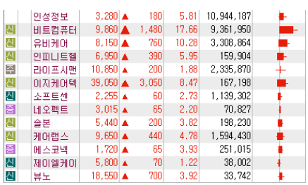 안녕하세요. 오늘은 비트컴퓨터 인피니트헬스케어 인성정보 유비케어 라이프시맨틱스 등 재택치료 관련주를 살펴보겠습니다. 최근 확진자 추세가 심각해지면서 병상부족으로인해 재택치료자들이 늘고있습니다. 코로나19 확진자 중 중증 이하의 확진자를 치료하는 감염병전담병원 병상 가동률이 단계적 일상회복 이후 최대치로 나타나며 재택치료자는 처음으로 2만명을 넘어섰습니다. 10일 중수본에 따르면 전날 오후 5시 기준 전국의 감염병전담병원 1만2194개 중 8981개 병상이 사용 중이어서 가동률은 73.7%으로 집계됐으며, 수도권은 85.4%를 기록했습니다. 앞으로 늘어나는 환자수와 병상부족으로 인해 재택치료 관련주들이 강세를 보입니다.