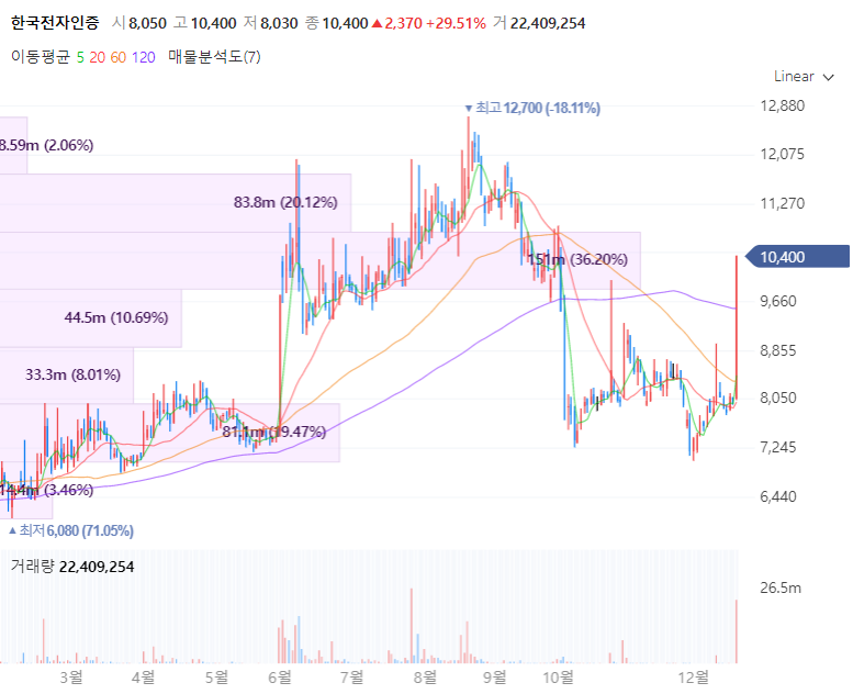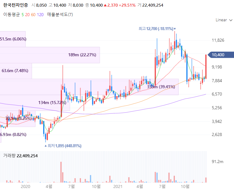 한국전자인증은 기업 및 개인의 전자인증서, 글로벌SSL인증, 생체인증, IoT인증 등 보안솔루션 등을 주요사업으로 영위하는 전문기업이니다. 지난 10월 27일 토스뱅크의 주식 290만9주를 145억4만5000원에 취득하며 약 440만14주로 한국전자인증의 토스 지분은 4%를 보유합니다. 아울러 한국전자인증은 지난 2일 과학기술정통부와 한국인터넷진흥원(KISA)로부터 전자서명법에 따른 ‘전자서명인증사업자‘로 인정받았으며, 12월에 클라우드 기반의 인증서비스를 선보일 예정입니다.