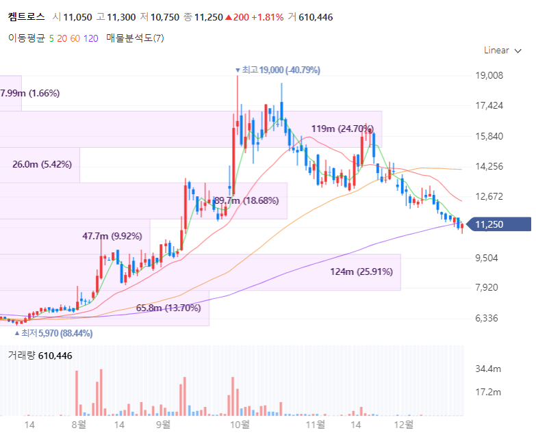 켐트로스는 유기합성기술 및 합성연구 개발 역량을 기반으로 2006년에 설립된 회사로 정밀화학 산업 각 분야에서 필요로 하는 주요 케미칼 소재들을 생산합니다, 특히나 전해액 첨가제와 포토레지스트 핵심소재로 알려진 광개시재를 생산 중입니다. 지난 10월 켐트로스는 EV용 리튬이온 2차전지 전해액 제조 방법 및 조성물 특허권 취득하였으며 전해액에 첨가하여 전지의 급발열을 방지하므로써 전지의 안정성을 향상시키는 물질의 제조 방법으로 알려집니다.