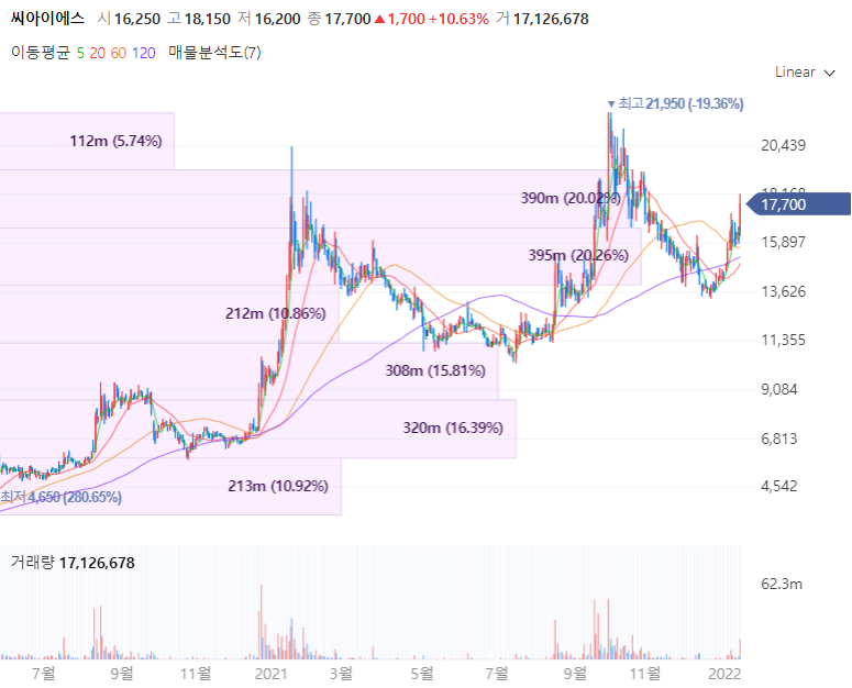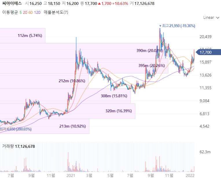 씨아이에스는 리튬 이차전지 생산을 위한 전극 제조관련 장비를 전문 제작하며 2차 전지 전공정인 Coater, Calender, Slitter, Tape Laminator 및 기타설비 등을 제조하는 전문기업입니다. 지난 12월 24일 190억원 규모 2차전지 전극공정 제조장비 공급 계약을 체결하는 등 활발히 사업을 영위중입니다. 씨아이에스는 중국 최대 전기차 배터리 기업인 CATL에 2차전지 제조용 전극제조장비 등을 공급하고 있으며 애플카의 협력사로도 부각됩니다. 코팅공정에서 기존 열풍 방식의 건조 시스템의 틀에서 벗어나 과열증기를 이용한 건조 방식의 코터를 개발하여 생산성을 높이고, 슬리팅 공정에는 불량 부분을 식별하는 라벨러에 대한 특허를 보유합니다.