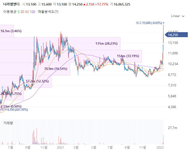 나라엠앤디는 1999년 LG전자 생산기술센터 금형 공장을 분사해 설립된 회사로 자동차와 가전용 금형과 부품을 전문적으로 생산합니다. 신규 사업으로 전기차의 배터리 팩 부품을 생산해 LG화학에 납품합니다. 나라엠앤디는 LG화학 배터리팩 최대 공급사이며 2차전지 전극공정에 필요한 장비 생산하며 LG전자가 동사의 2대주주입니다. 2021년 3분기 기준 매출비중은 금형부문 44.22%, 배터리팩 부문 39.53%, 부품양산 부문 16.26%로 구성되며